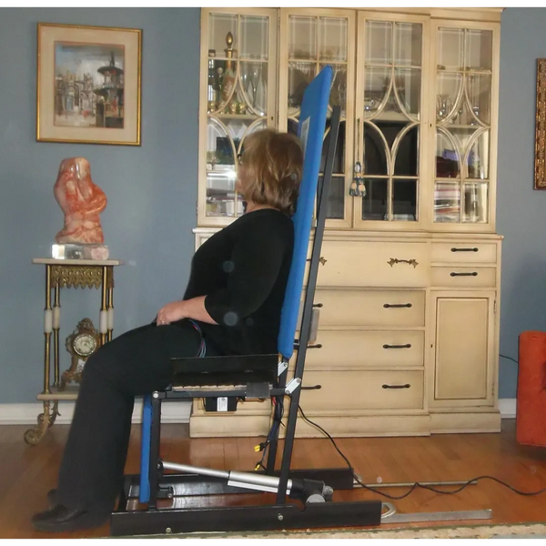 There are no slings or bulky dizzying hoists necessary. Rather, the person needing a lift from the floor can just easily slide or roll onto the SitAssist with little to no fuss...and probably no help from anyone. This has already been demonstrated in private homes, nursing homes, hospitals and the famed Kessler Institute in West Orange, NJ. Nurses, aides, PT’s, MD’s, Nursing Homes and especially patients have expressed great comments and easily recognize the benefit of such a device. Another recommended use is to lower oneself to the floor, such as for exercise. The base model has a 300 lb. capacity, while the bariatric unit lifts up to 750 lbs. Accessories may be added such as a scale, wheels, communication and much more.